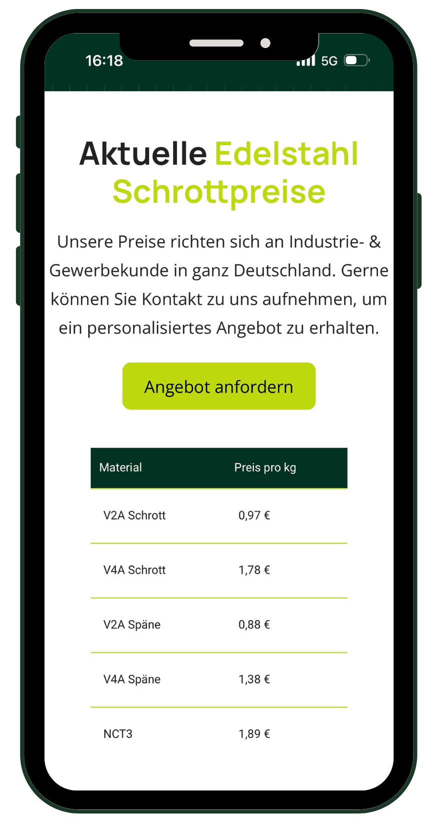Aktuelle SchrottpreiseSie interessieren sich für unsere Schrottpreise pro kg und wollen keine Veränderung verpassen? Laden Sie sich die App noch heute!